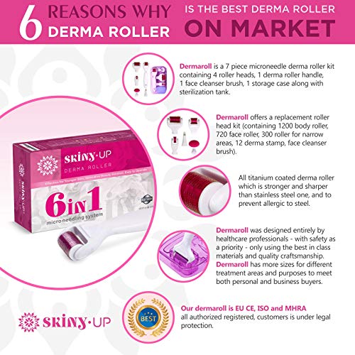 Derma Roller 6 in 1 Skiny Up® – Titanium Micro Needle Roller for Skin Care / More Sizes for Choice / to reduce Wrinkles…