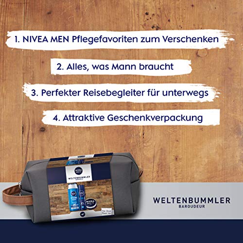 NIVEA MEN Weltenbummler Cadeauset, toilettas voor mannen met shampoo, deodorant spray en Nivea Men crème, reisset voor…
