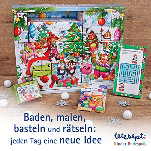 tetesept adventskalender voor kinderen, badplezier (24 leuke cadeaus) Elk jaar wachten alle kinderen ongeduldig tot de kerstman komt. Tetesept en de Spiegelburg verkorten de wachttijd met 24 leuke badaccessoires voor kinderen en bijzondere verrassingen: elke dag een nieuw avontuur in de badkuip en ideeën om te schilderen, knutselen en raadselen.