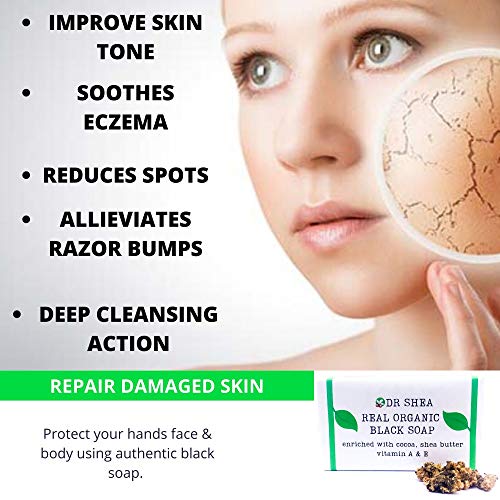 Organic African Black Soap 100g – Antibacterial Body Wash & Hand Wash – Eczema, Dry Skin, Psoriasis, Scar Removal, Face…