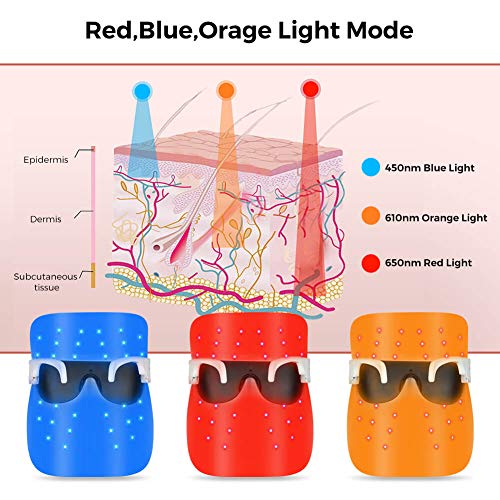 Drie onafhankelijke lampen. Rood licht kan nieuwe cel geboren, anti-rimpel bevorderen. Blauw licht kan bacteriën genezen, de overtollige talgafscheiding onderdrukken en acnebehandeling. Orange Light kan het melaninemetabolisme bevorderen, donkere vlekken, acne-vlekken en pigmentatie van wondvorming verminderen.