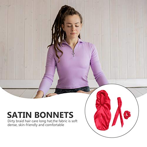 Specification: FRCOLOR Rode Satijnen Slaap Cap Voor Lange Vlechten Haar Zijde Lange Satijnen Motorkap Slaap Cap Zachte Elastische Band…