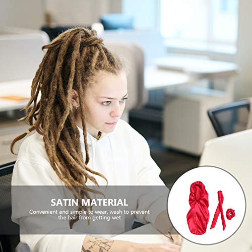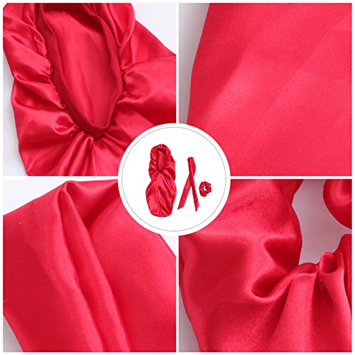 FRCOLOR Rode Satijnen Slaap Cap Voor Lange Vlechten Haar Zijde Lange Satijnen Motorkap Slaap Cap Zachte Elastische Band…