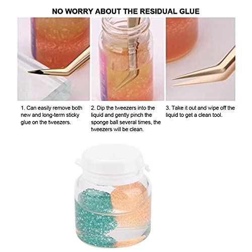 【GEMAKKELIJK TE BEDIENEN】 eerst moet u het pincetgereedschap in deze reinigingsvloeistof onderdompelen en vervolgens zachtjes in de sponsbal een paar keer knijpen om het vuil van het oppervlak van de pincet te verwijderen en het schoon te houden.